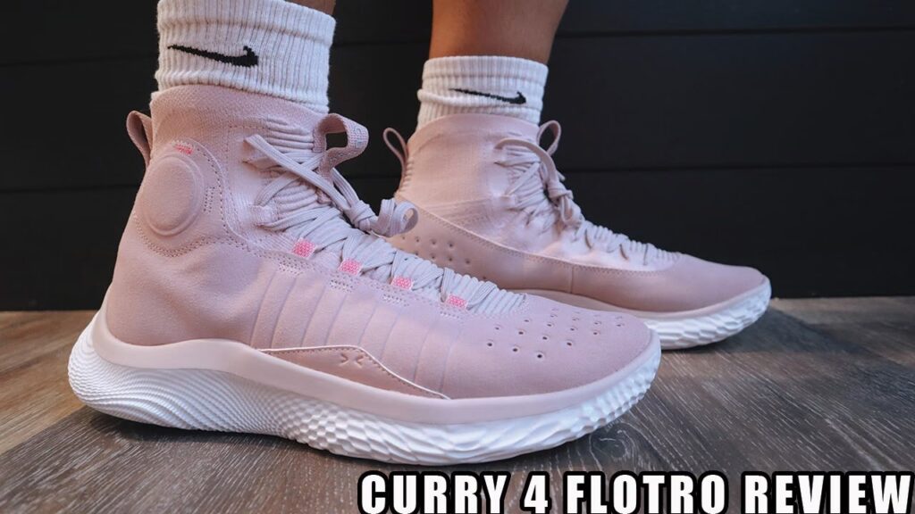 The Under Armour Curry 4 Flotro Pink is an updated version of NBA player Steph Curry’s fourth signature basketball shoe with Under Armour. It features a light pink colorway and a high-top bootie design that conforms to the ankle’s shape. The upper is soft suede with a fitted collar constructed from UA IntelliKnit.