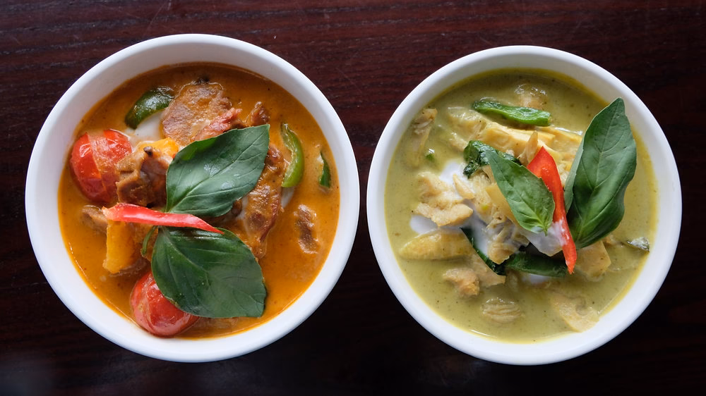 - Zarówno zielone, jak i czerwone curry wykorzystują mleko kokosowe jako bazę, nadając im kremową konsystencję i łagodząc ostrość.