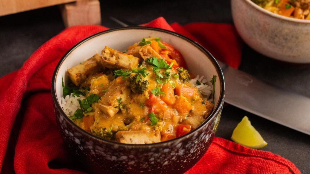 Wegańskie curry orzechowe to danie przygotowywane bez użycia jakichkolwiek produktów pochodzenia zwierzęcego. Oznacza to brak mięsa, nabiału czy jajek. Zamiast tego, bazuje na warzywach, mleczku kokosowym, maśle orzechowym i roślinnych źródłach białka, takich jak ciecierzyca, soczewica, tofu czy tempeh. Jest to idealna opcja dla wegan, wegetarian oraz wszystkich, którzy chcą włączyć więcej roślinnych posiłków do swojej diety.