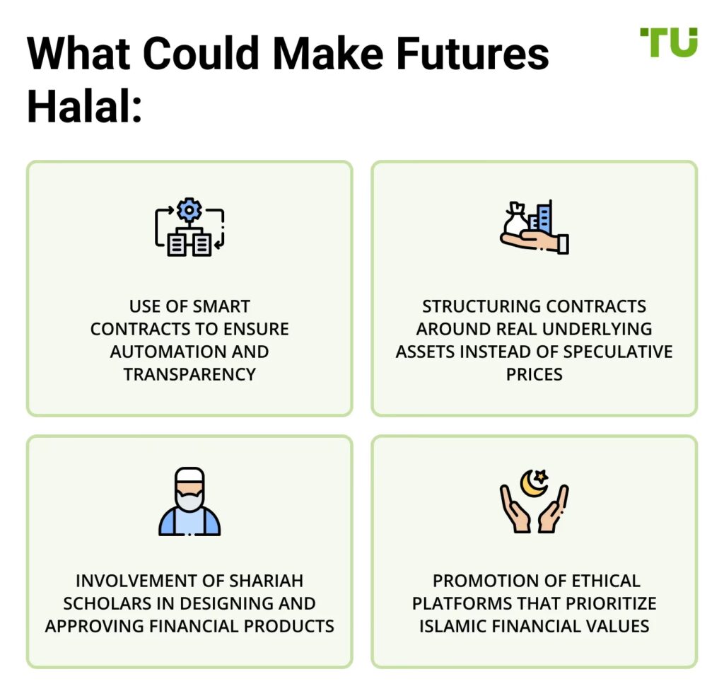 Chociaż kontrakty terminowe odgrywają ważną rolę w konwencjonalnych gospodarkach, islamskie finanse oferują alternatywne sposoby zarządzania ryzykiem, które są zgodne z zasadami Szariatu. Przykłady obejmują struktury przypominające ubezpieczenia (takaful), kontrakty podziału ryzyka (mudarabah, musharakah) oraz inne instrumenty, które umożliwiają zabezpieczenie się przed ryzykiem cenowym bez uciekania się do zakazanych elementów. Rozwój islamskiego sektora finansowego świadczy o tym, że można budować złożone i efektywne systemy finansowe bez naruszania zasad etycznych.