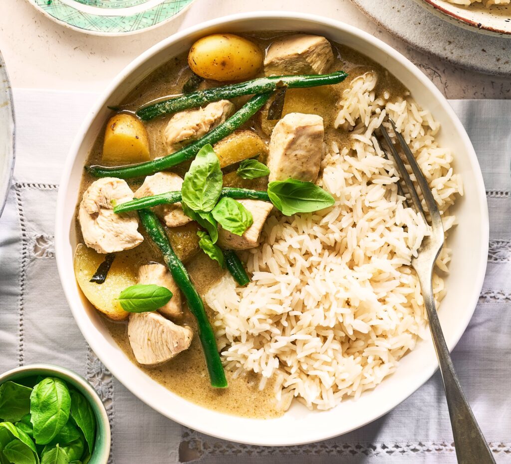 Najpopularniejszymi dodatkami do curry są ryż (jaśminowy, basmati, brązowy) oraz różnego rodzaju pieczywo, takie jak naan, roti, chapati czy paratha. Możesz również podać je z świeżą sałatką, jogurtem raita (sos jogurtowy z ogórkiem i przyprawami) lub piklami, aby zrównoważyć intensywność smaków.