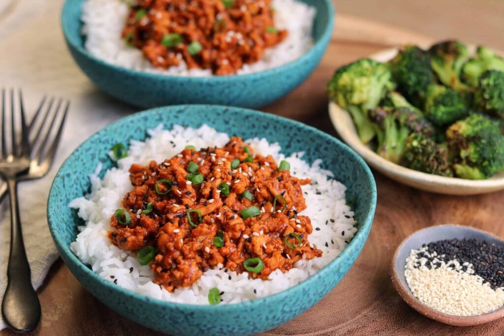- Tajskie curry z kurczaka: Gotuj przyprawionego kurczaka mielonego na patelni z pokrojoną papryką i cebulą, aż kurczak przestanie być różowy. Dodaj puszkę mleka kokosowego i gotuj na wolnym ogniu, aż sos zgęstnieje. Podawaj z ryżem lub makaronem i udekoruj posiekaną kolendrą.