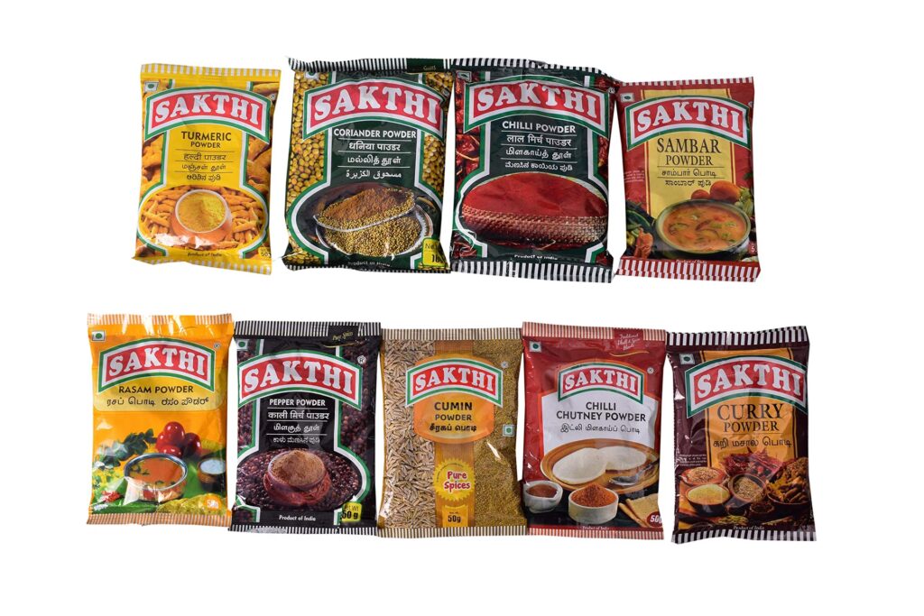Produkty Sakthi Masala cieszą się popularnością nie tylko w Indiach, ale są również szeroko eksportowane na rynki międzynarodowe, pozwalając ludziom na całym świecie doświadczyć smaku prawdziwej kuchni indyjskiej. Wśród kluczowych produktów eksportowych znajdują się: