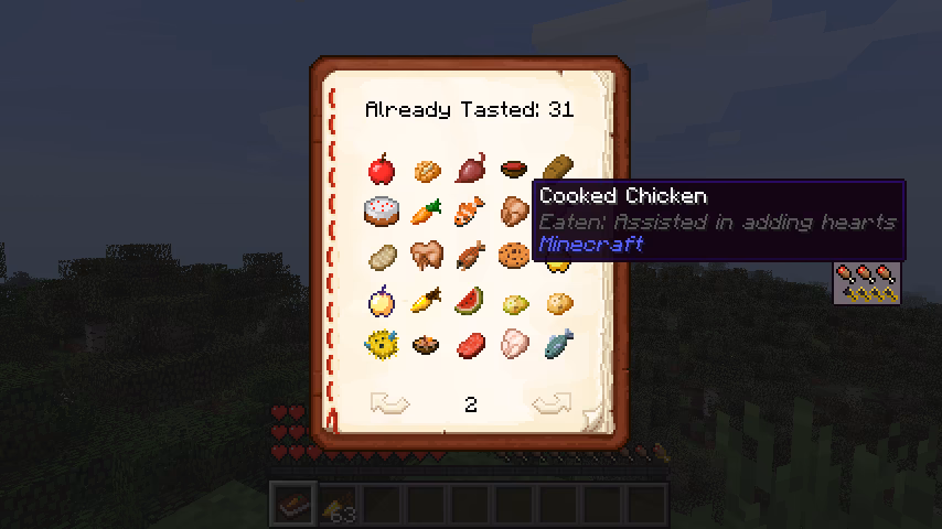 | Marchewkowa | Nagradzanie dodatkowymi sercami za jedzenie unikalnych potraw. | Promowanie eksploracji kulinarnej, zwiększanie maksymalnego zdrowia. | Kamienie milowe, komendy zarządzające listą jedzenia. | AppleSkin. |